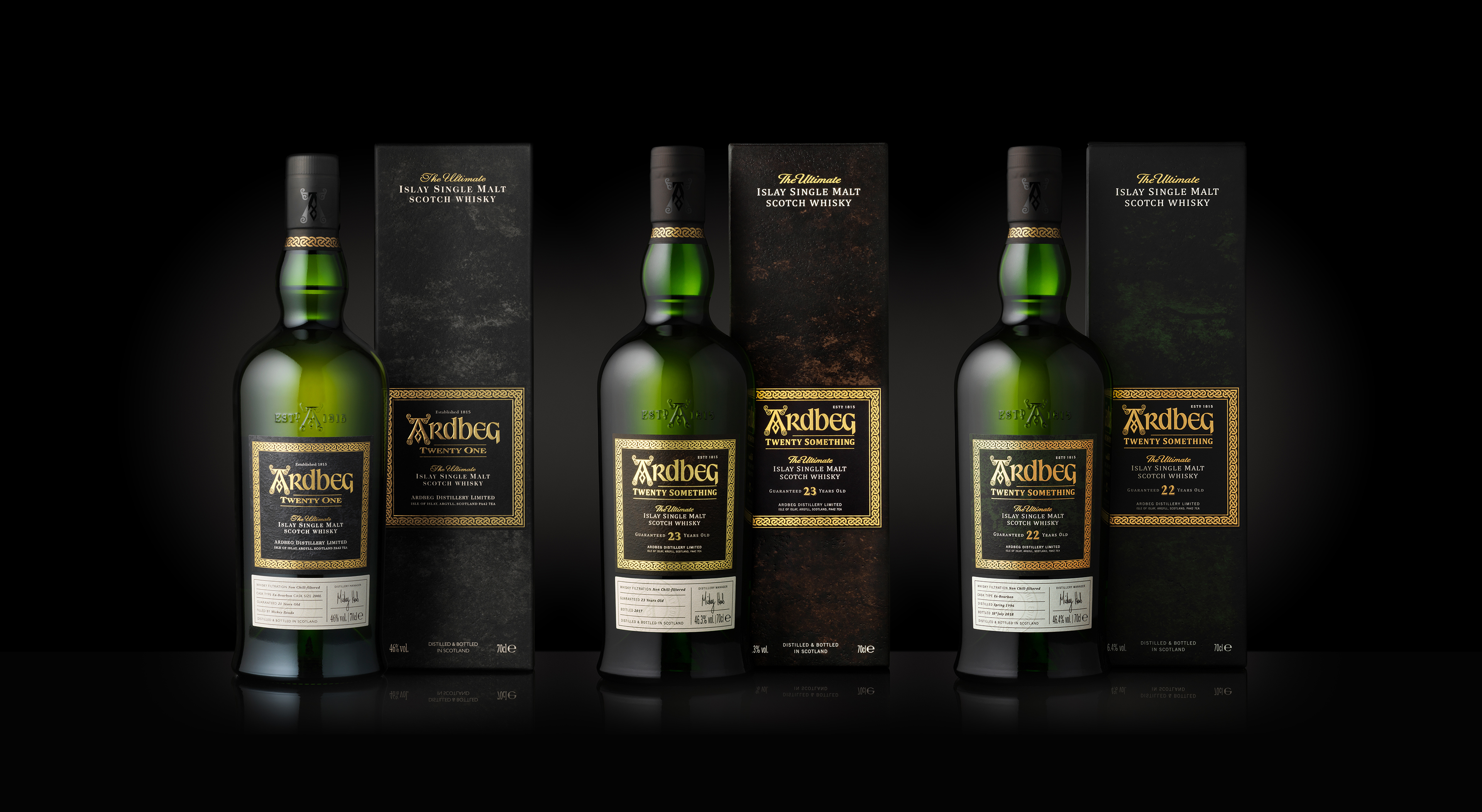 Limited edition packaging of three premium expressions, each around 20-something years old.